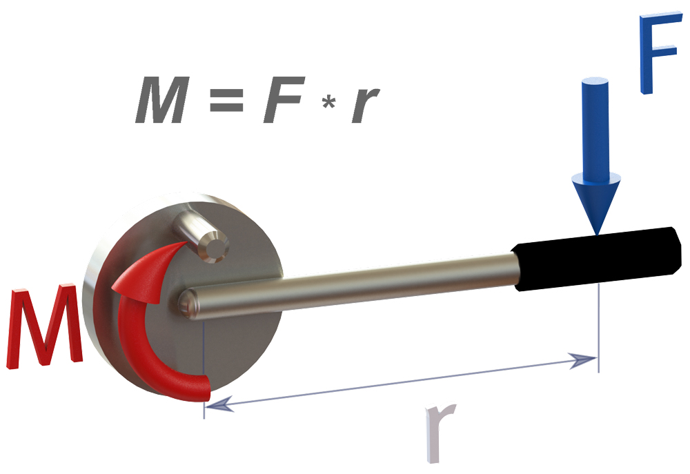 Prinzipskizze: Drehmoment dargestellt als Kraft, die auf einen Hebelarm wirkt